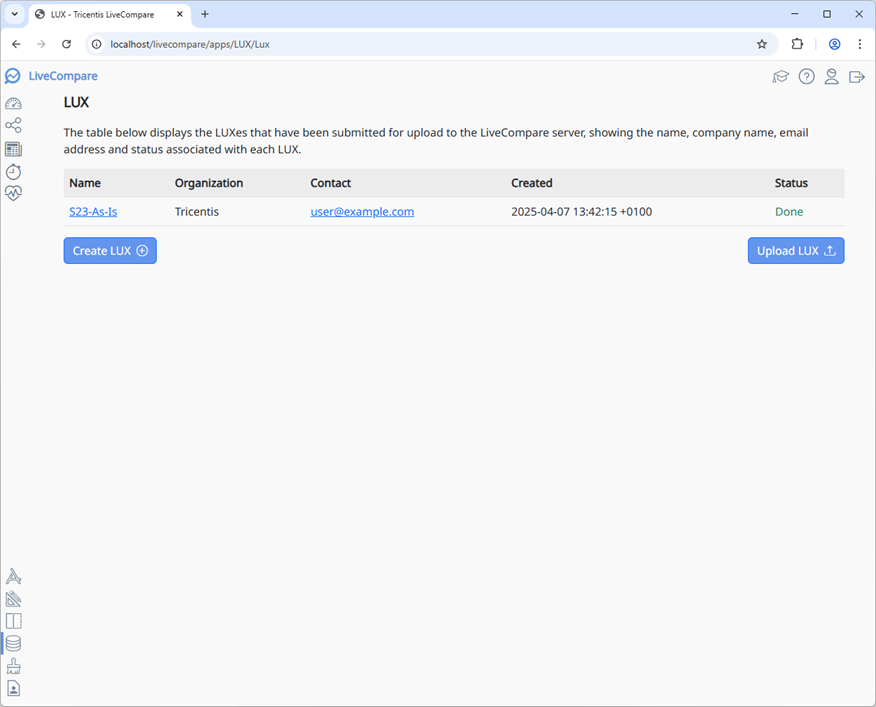in the navigation panel and then click Upload LUX. The following screen is displayed.