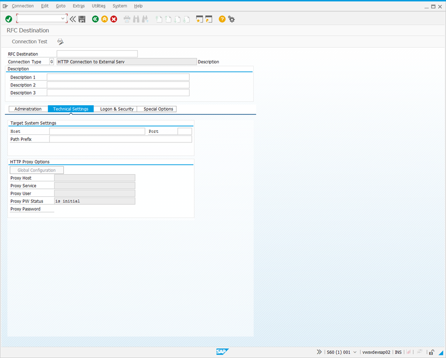 Copy the RFC Destination field value and paste it into a new text document in the following format.