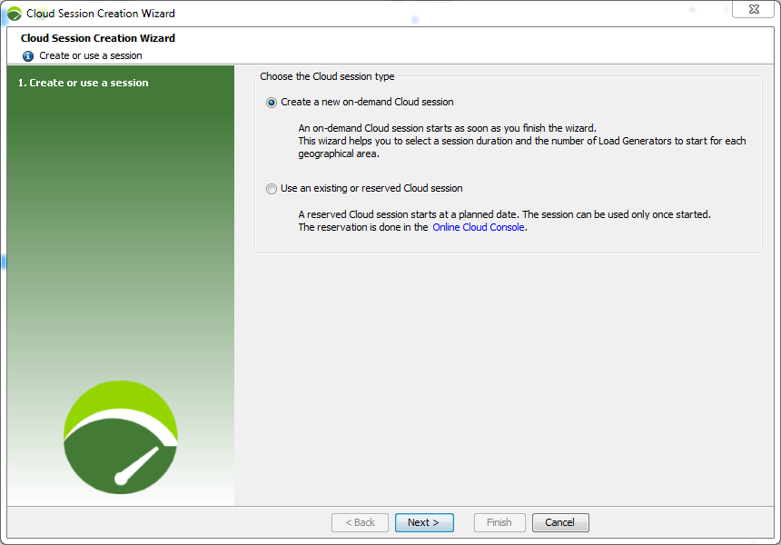 In the wizard, choose Create a new cloud session on-demand. Click Next.