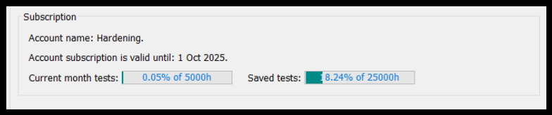 Note: If you are using VUHs or a daily rental license for your tests, your Account quota of current month tests is not impacted (but your consumption of saved tests is).
