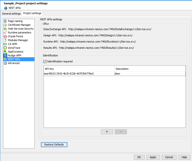 The Identification panel enables you to manage the client's identification. By default, when the checkbox is disabled, no identification is performed at Project level but identification can be defined at General level, see REST APIs for more information.