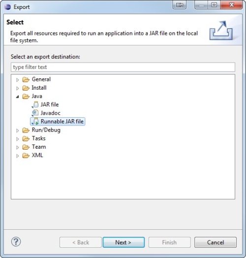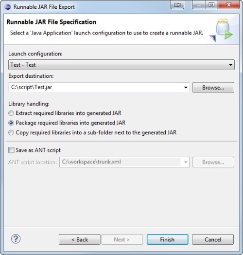 After customizing the M-eux test scripts, you need to export the Java project to a runnable JAR file so that it can be launched by NeoLoad.