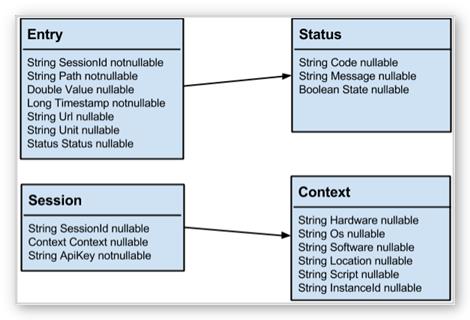 The Controller receives Entry objects defined by a Status and associated to a Session containing Context information. The data model can be defined as following: