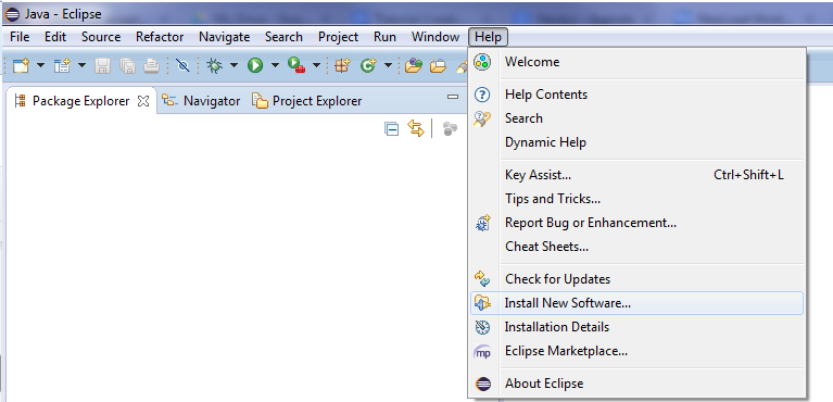 In the Help Menu, select Install New Software...