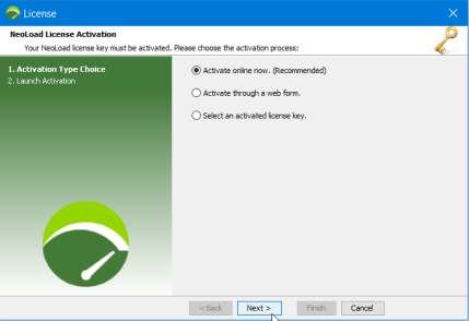 Once installed, a license key must be activated before using NeoLoad. The activation procedure links the license key to the installation machine. Once activated, the key may still be transferred onto another machine with the process described in Transfer a license key.