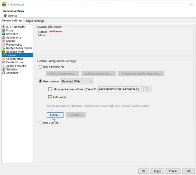 This chapter shows you how to configure an automatic NeoLoad lease.