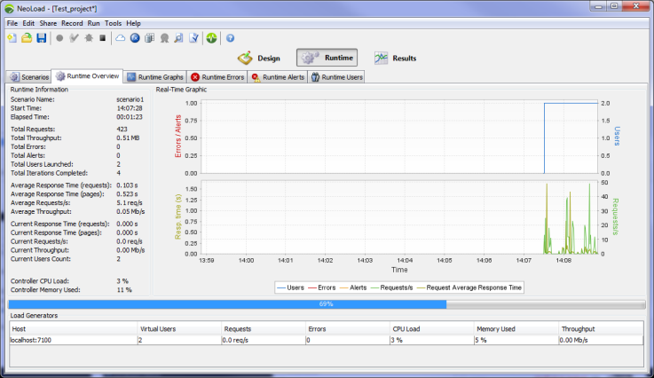In the Runtime Users tab, watch the Virtual Users used in the test.