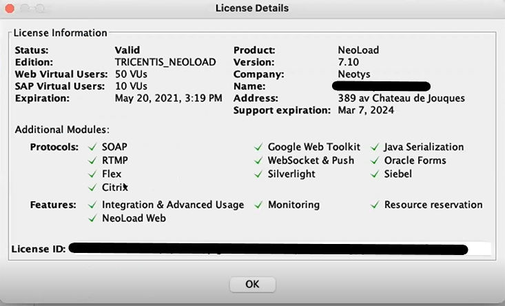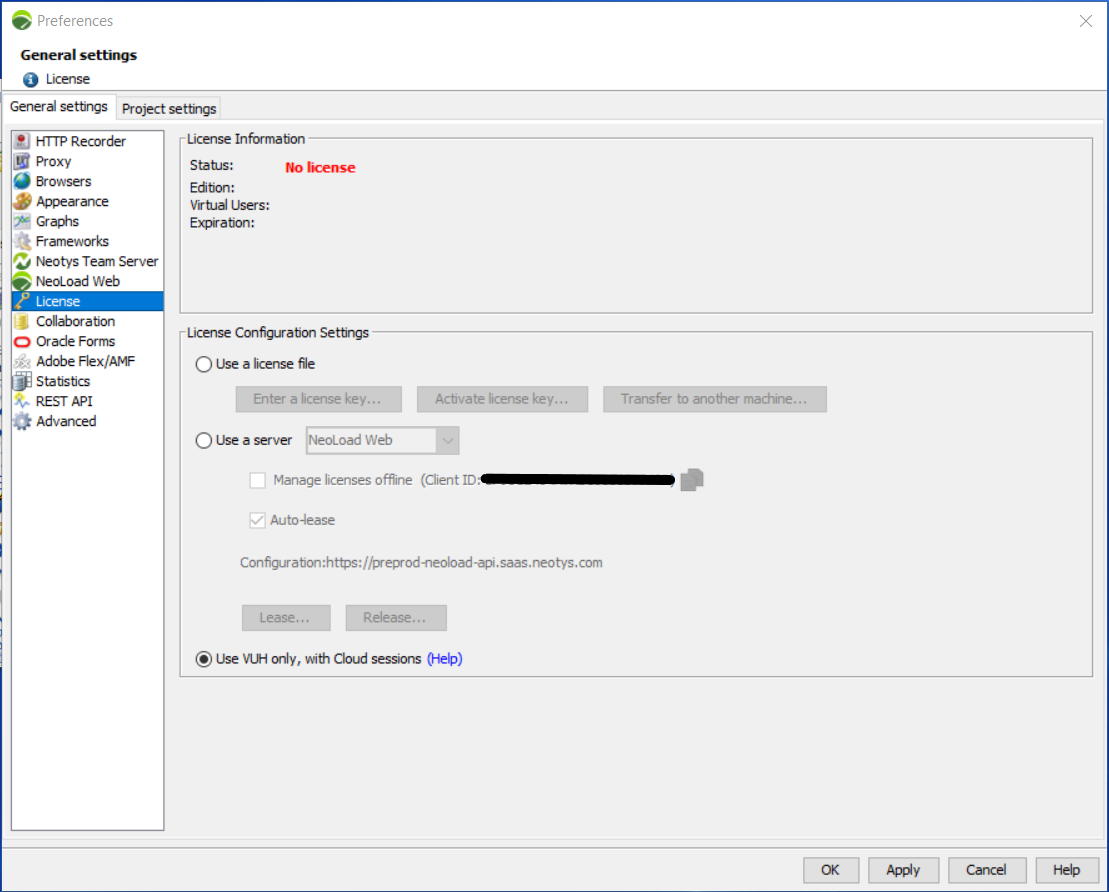 The License General settings section makes it possible to run NeoLoad: