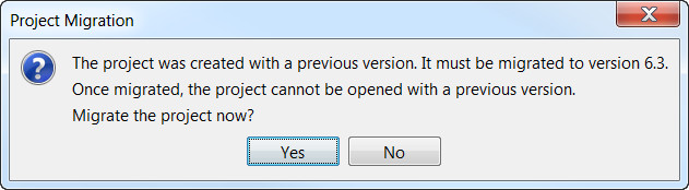 In the message box for the project migration, click Yes.