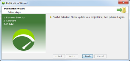 To resolve this conflict, you can either restart the migration process with a new clone of the project, or revert the other team member publication on the Git server.