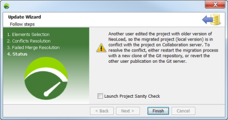 All the other team members should publish their local projects from a previous minor version of NeoLoad onto the Git server. Updates can not take place again until the migration is complete.