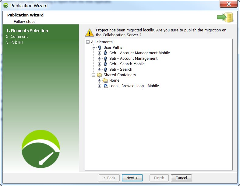 To migrate a collaborative project on the collaboration server, follow these steps: