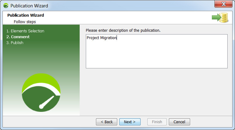 Enter a comment for migration publication. Click Next.