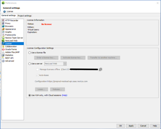 When it comes to testing using the NeoLoad Cloud Platform, VUH may be used to run a Cloud test by selecting the Using VUH only, with Cloud sessions option in the License General settings.