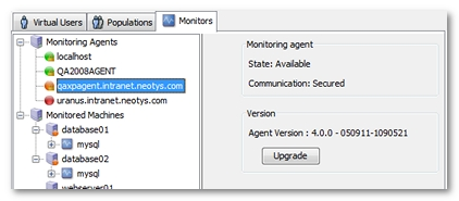 The NeoLoad Controller is able to upgrade outdated monitoring agents (orange lights in the list). This is particularly useful after upgrading a Controller.