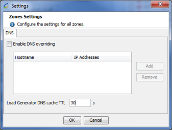 It is possible to configure IP addresses to override DNS resolution and distribute them to all Load Generators of all zones. Therefore, no DNS resolution will be performed for these host names.