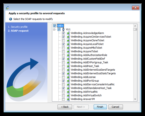 The security profiles are then applied to the selected SOAP requests and responses.