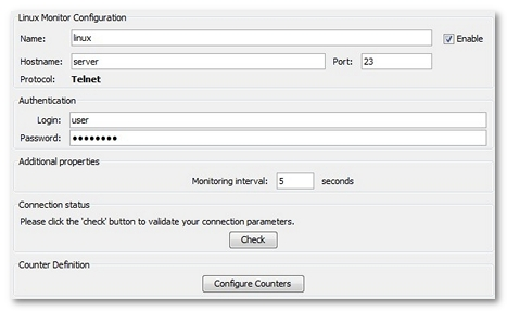 The role of a monitor is to group all counters and indicators set on a given server. It also tells NeoLoad how to connect to the monitored system.