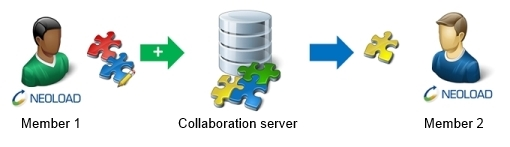 The Collaboration mode relies on a central server called Collaboration Server. The Collaboration Server helps share a set of projects and tests results alike. Operationally, it requires any SVN or GIT server or the one available with Neotys Team Server (NTS). For more information, see Configure the connection to a collaboration server.