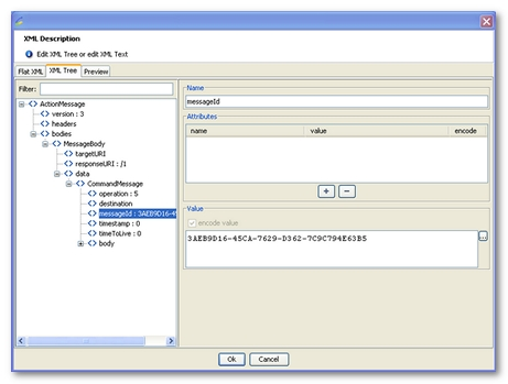 NeoLoad-encode="false"to the corresponding node, visible in the Flat XML tab. This additional attribute is deleted during the XML encoding phase of the test and is not sent to the server. -