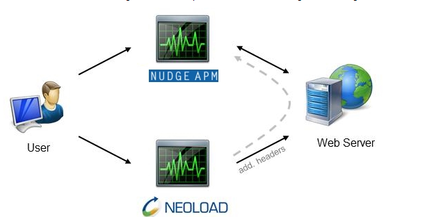 The NeoLoad module for Nudge APM sends specific information to Nudge APM during a NeoLoad test. It adds additional information to the HTTP headers so that Nudge APM can list the transactions initiated from NeoLoad.
