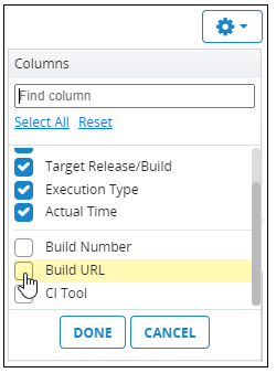 If the transfer to NeoLoad Web is enabled, the link to the NeoLoad Web Test Result is available in qTest in the “Test Log Details”, and in the execution history “Build URL” column. By default this column is hidden, you have to add it to the table by clicking the Gear button: