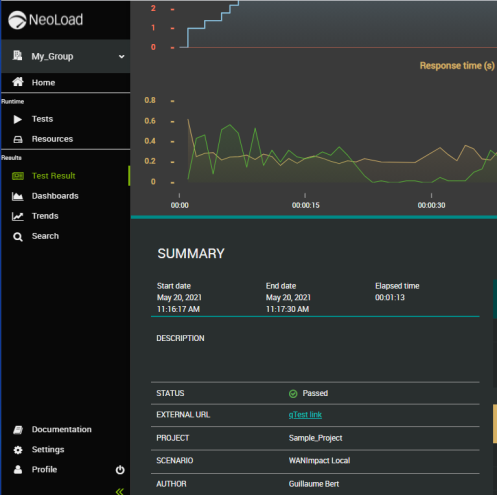 in the Results summary in NeoLoad GUI
