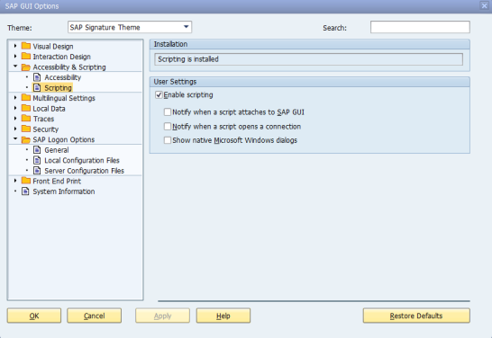 If necessary, untick the Notify when a script attaches to SAP GUI check box.