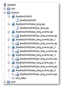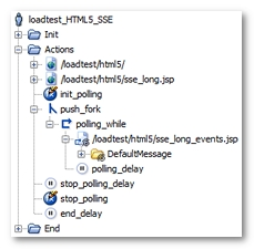/loadtest/html5/sse_long_events.jsp. The request is included in a while action, for examplepolling_while, which iterates until theNL-stopPollingvariable generated by NeoLoad switches to true. Also, the while action is itself in a secondary execution thread with the fork action, for examplepush_fork. For more information, see Polling requests. -
