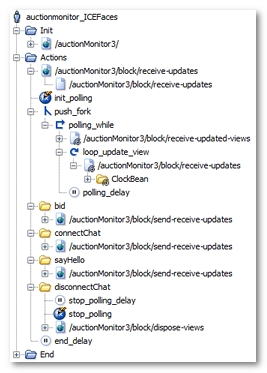 viewsToUpdatehas been placed on the first polling request (/auctionMonitor3/block/receive-updated-viewsfor example), which retrieves the id's for the ICEfaces views to be updated. This is why the second polling request has been placed in a loop (loop_update_viewfor example), in order to issue an update request for each previously-extracted view. -