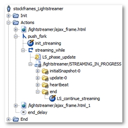 LS_phaseparameter is handled using theLS_phaseVariable Extractor set on the session creation request (creation_session.jsfor example). A JavaScript action (LS_phase_updatefor example) increments the value of theLS_phasevariable to reproduce the browser behavior. Lastly, this variable is used in the open streaming request (/lightstreamer/STREAMING_IN_PROGRESSfor example).