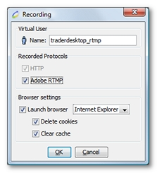 To be able to record RTMP requests, the Adobe RTMP option must be checked in the recording window.