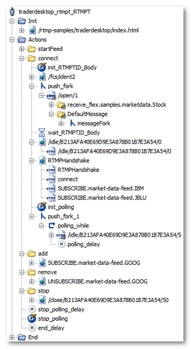 /idle/${RTMPTID}/5for example) has been placed in a loop (polling_while), which continues to loop until theNL-stopPollingvariable generated by NeoLoad becomes true. Lastly, the loop itself has been placed in a secondary execution thread using a fork action (push_fork_1for example). -