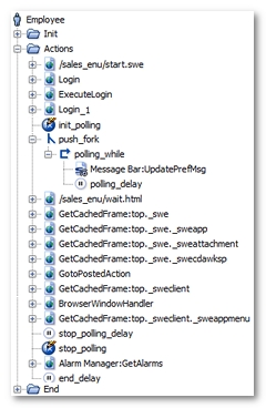 Message Bar:UpdatePrefMsgfor example). This request has been placed in a loop (polling_whilefor example), which continues to loop until theNL-stopPollingvariable generated by NeoLoad becomes true. Lastly, the loop itself has been placed in a secondary execution thread using a fork action (push_forkfor example). For more information, see Polling requests -