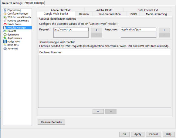 For NeoLoad to decode the GWT requests and responses into XML, the required libraries must be declared. Required libraries are: