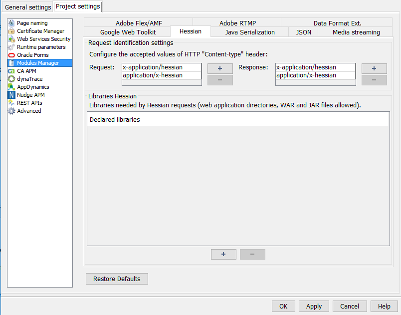 For NeoLoad to decode the Hessian requests and responses into XML, the required libraries must be declared.