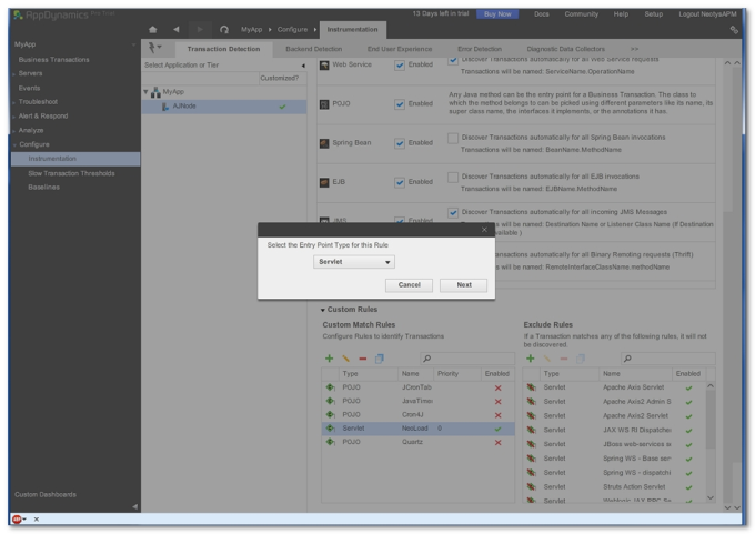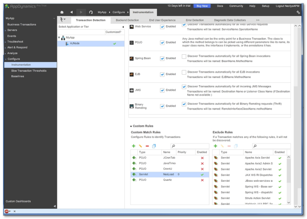 Click Configure > Instrumentation > Transaction Detection.