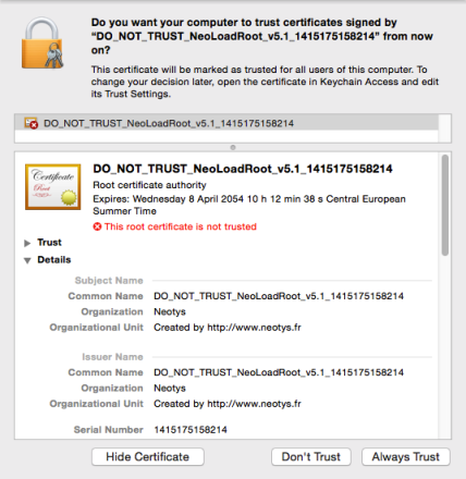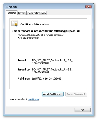 To find the NeoLoad root certificate, please refer to Certificates.