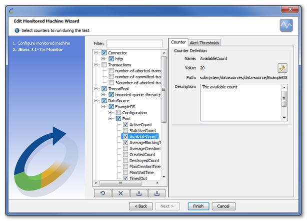 Depending on the JBoss version used, NeoLoad displays only the counters that are supported.