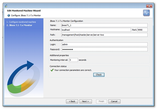 In standalone mode, a JBoss 7.1 or Jboss 7.2 server can be monitored with the /management path.