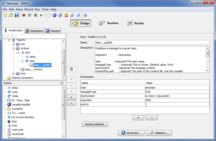 The Topic - Publish JMS Advanced action is used to publish a message to a given topic.