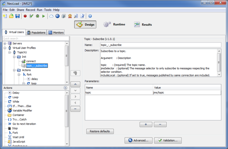 The Topic - Subscribe JMS Advanced action is used to subscribe to a topic.