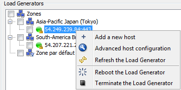 A right-click on a Cloud Load Generator gives access to commands.