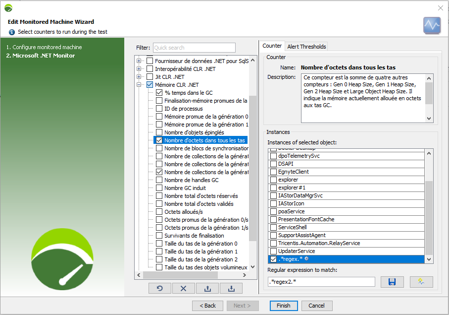 On top of the list of available counters and instances you can choose from when you design a Microsoft .NET monitor, NeoLoad enables you to configure regular expressions.