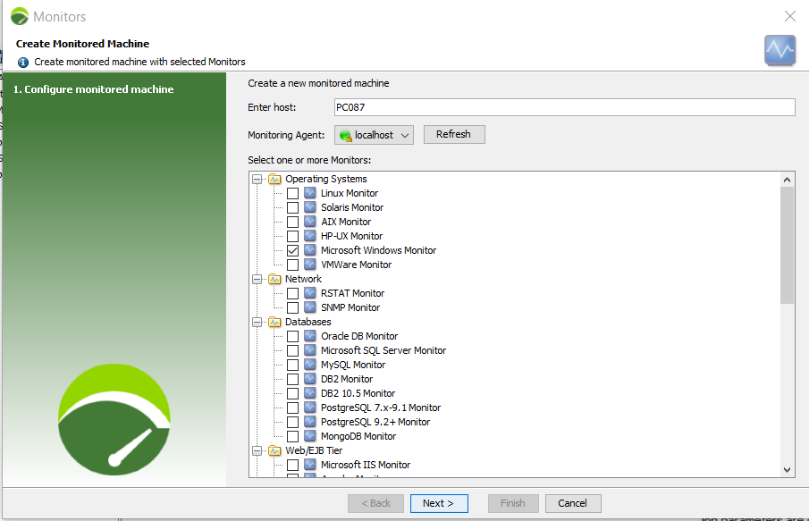 NeoLoad makes it possible to create a new monitor either using the monitored machine creation wizard, as described in Configure a monitored machine, or from an existing monitored machine, as described in Create and configure a monitor: