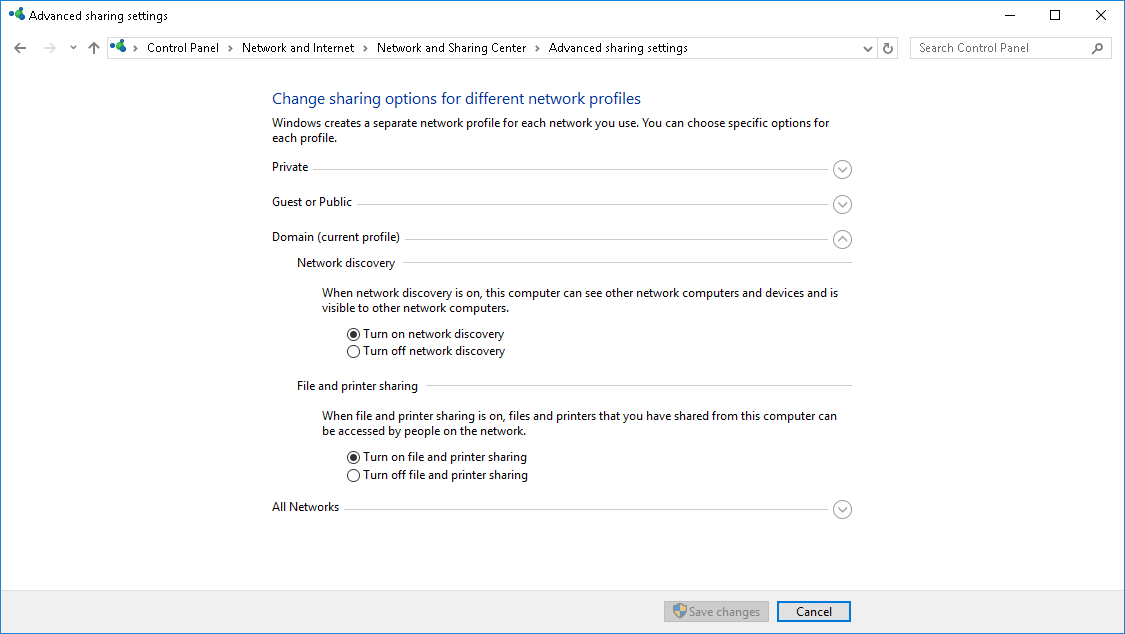 Enabling the File and printer sharing option in Windows. For more information, see File and printer sharing below.