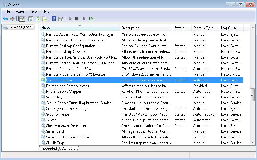 Starting the Remote Registry service on the remote monitored machine. For more details, see Remote Registry below.