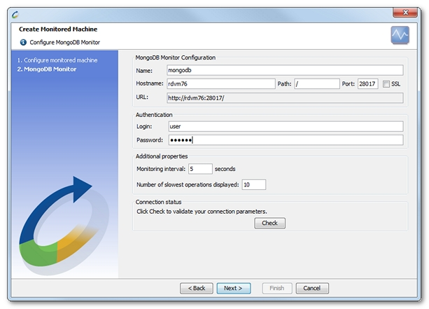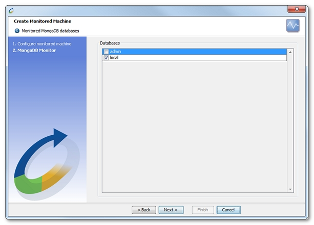 After defining the MongoDB monitor, the wizard displays the list of the databases to monitor.