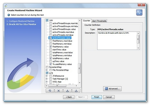 NeoLoad displays a list of the EARs (Enterprise Archive) and WARs (Web Application archive) deployed on the configured server. It then automatically selects the most appropriate counters for each of the selected applications.