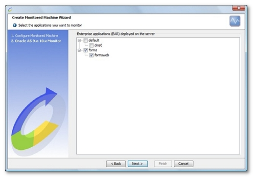 To define the connection to an Oracle Application Server using this monitor requires that the DMS (Dynamic monitoring System) library be activated. By default, it is activated on OC4J (Oracle Container 4 Java) servers version 10g.